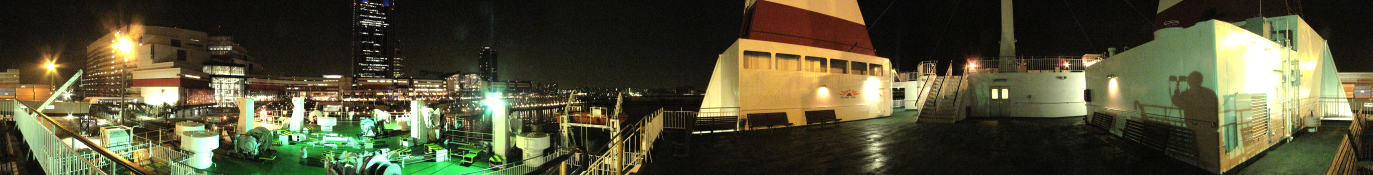 2009年1月20日 別府に航行するフェリー「さんふらわあ」の甲板から出港直前夜の6時50分撮影。