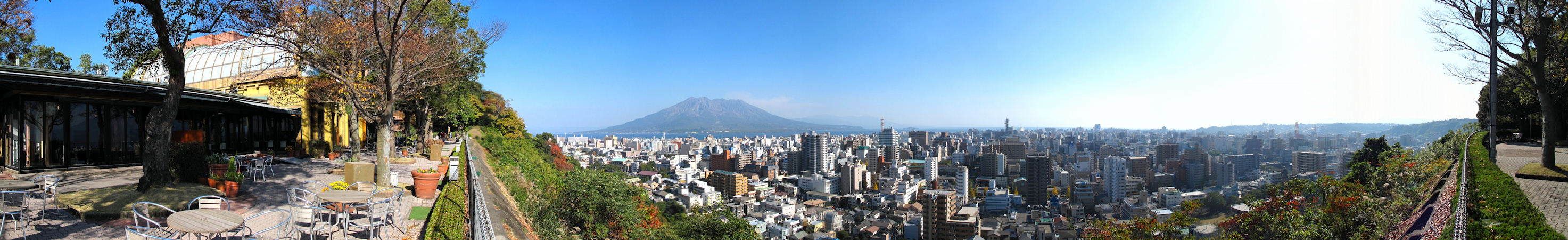 城山観光ホテルの展望台から鹿児島市内と桜島を眺める