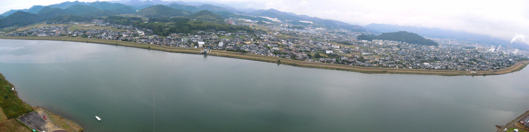 2010年10月31日 凧にデジカメぶら下げて回転リグで撮影した複数枚をつないで作った川内川のパノラマ