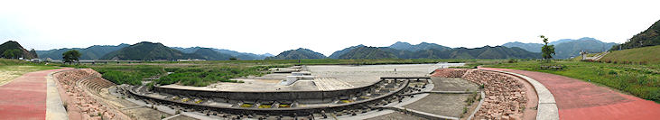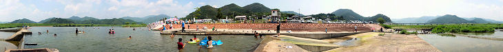 この水の無くなった川の中心から凧を揚げ全体を空撮しました。