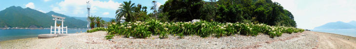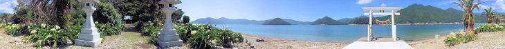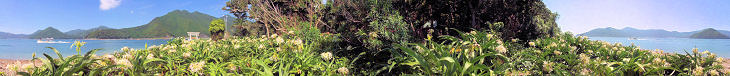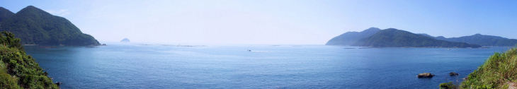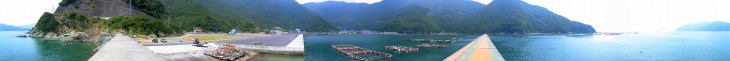 尾浦と畑野浦付近の海の風景をパノラマ写真でお楽しみください。
