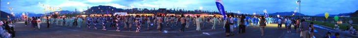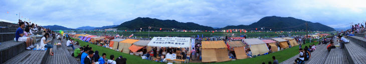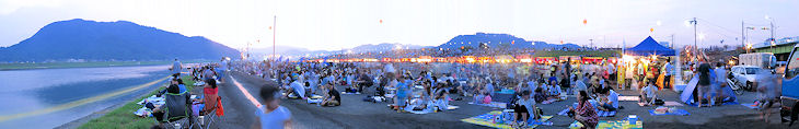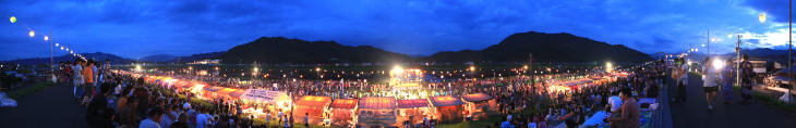 番匠川河川敷で午後7時から市民総踊り大会、午後8時から花火大会が行われます。