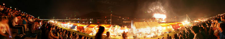 佐伯市花火大会 番匠の火祭りパノラマ風景とスライド写真