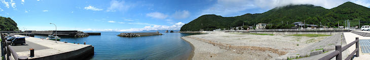 佐伯市上浦の海岸部と蒲戸崎からのパノラマ風景写真