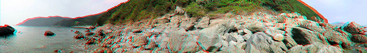 2011年8月 立体写真で見る大浜の海岸の岩(要赤青メガネ)