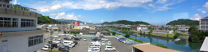 佐伯警察署3階から中川や大分県南部振興局を眺める