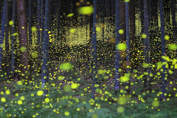 撮影2016年5月31日午後8時10〜8時50分多重露出 木立大中尾地区の竹林に出るヒメボタル