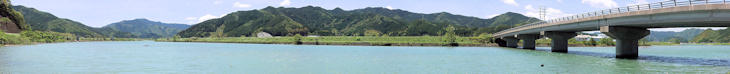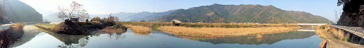 明治時代の茶屋が鼻と木立川と元越山の風景