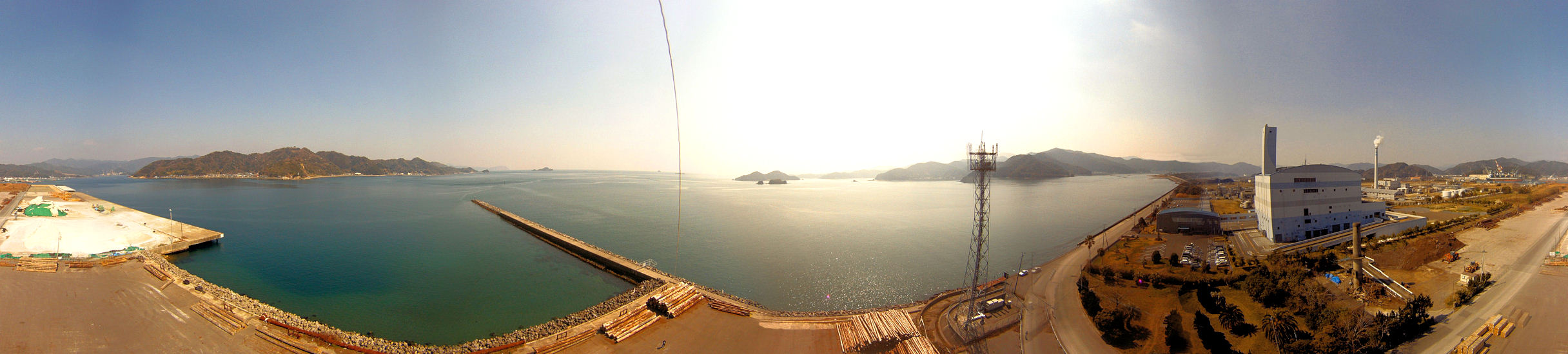佐伯市東浜から凧を揚げ撮影した広角パノラマ写真
