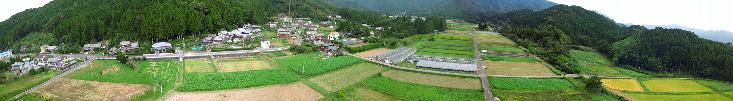 このパノラマ写真は凧にぶら下げたデジカメを回転させ6枚の写真から合成しました。