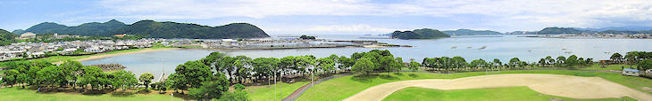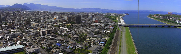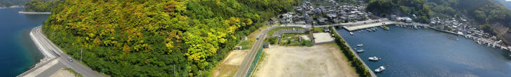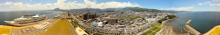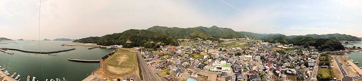 快晴の日 凧を使って佐伯市を空から360度全方向を空撮しパノラマに合成