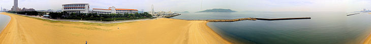 凧で空撮した福岡市の愛宕浜人工海浜公園360度