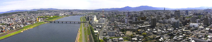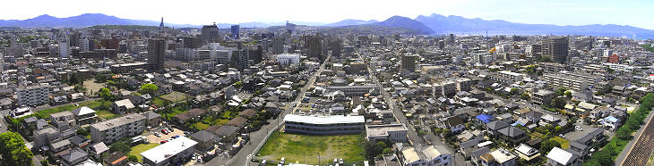 大分川河川敷から凧を揚げて撮影した写真複数枚を合成しパノラマにしました 写真1