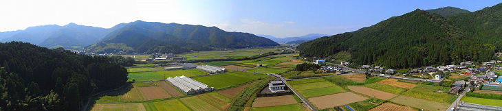 佐伯市木立の農道から凧を揚げて空撮パノラマ