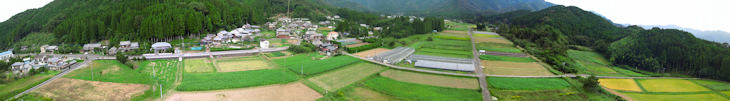 凧にデジカメをぶら下げて撮影した画像をつなぎ合わせて作った空撮パノラマ写真です。