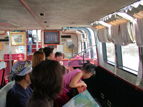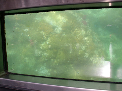 船内の様子です のぞき込むと船の底のガラス越しに海底の様子が見えます