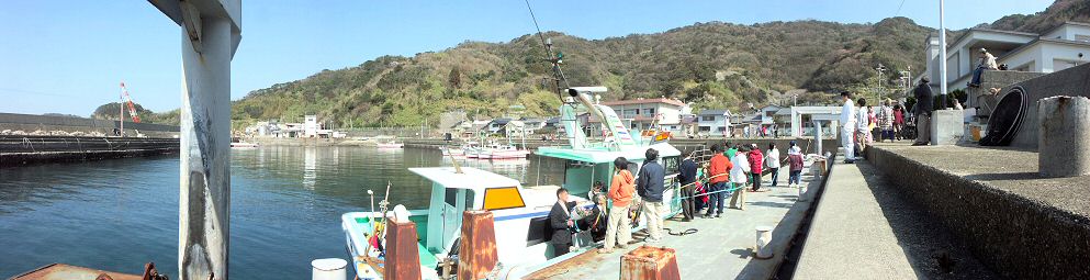 学校の先生の離任式を終え島を去っていく先生を見送る