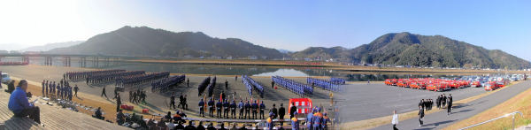 毎年佐伯市番匠川河川敷で行われる消防団出初式です。