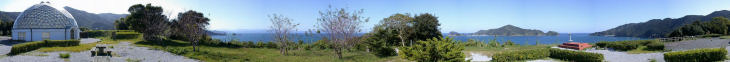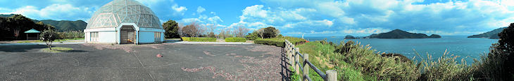 戦時中、豊後水道一帯の守備要塞として重要な役割があった丹賀、 今では砲台跡を利用した 丹賀ミュージアムパークとなっています。 ここから目の前に大島が見えます、大島からのパノラマ風景も掲載しました。 大島は元の間海峡を隔てて梶寄と相対しています。 大島の面積は1.8ku 周囲12km 西側に地下・田の浦・船隠の集落があります。 賀茂神社には大きなアコウ樹があります。 ←左の縦のパノラマもクリックしてご覧ください。 |