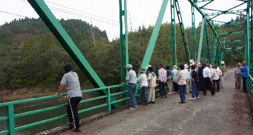 ダムに沈んでいるはずの石橋から新しい田代橋を眺める