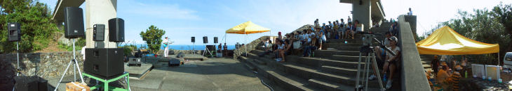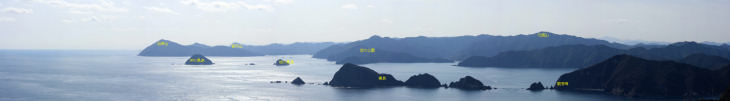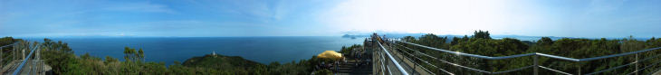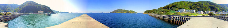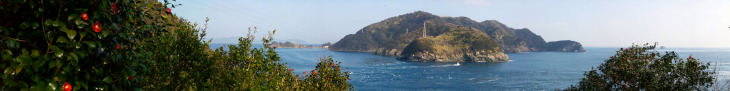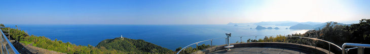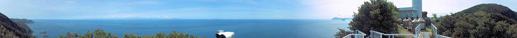 梶寄とつるみ半島先端や鶴御崎灯台のパノラマ風景写真