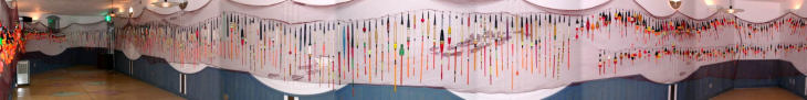 灯台施設内で大島に打ち上げられていたゴミの釣り浮きを展示