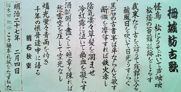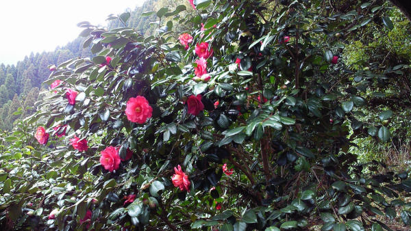 2009年3月 栂牟礼山(海抜224m)に登って見ました 携帯電話のカメラ機能で撮影 登山口にある案内板 栂牟礼城主の佐伯惟治について 原生椿園 頂上 頂上の石祠群 七九谷砦付近の展望所から 頂上にある明石秋室の歌