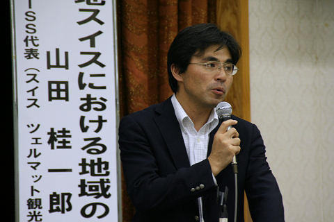 プロジェクターでたくさんの スイス・ツェルマットでの取り組み方などを紹介
