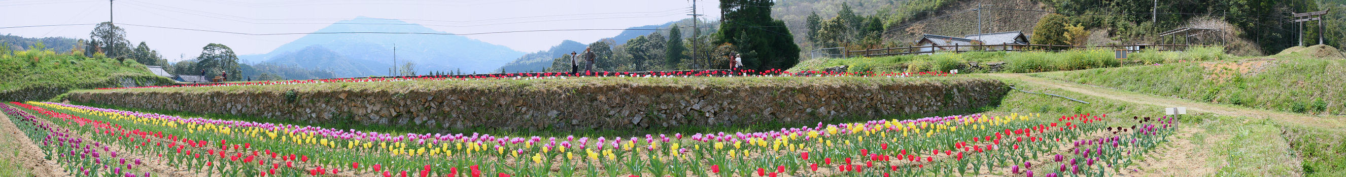 きょうは満開のチューリップを撮影に来たパノラマンをNHKのニュースカメラマンが取材 こちらはNHKとソニーが開発したハイビジョンカメラお値段も800万円とかレンズはキャノンです その下の台はリモコンでカメラを回転させパノラマ撮影出来る台です パノラマンも興味しんしん