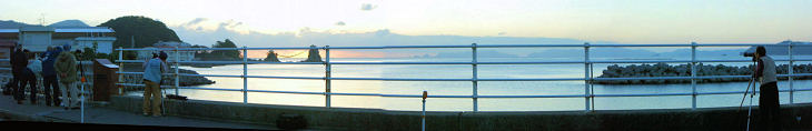 2013年10月12日 豊後二見ヶ浦の夫婦岩からの朝日を撮影に来たカメラマン達