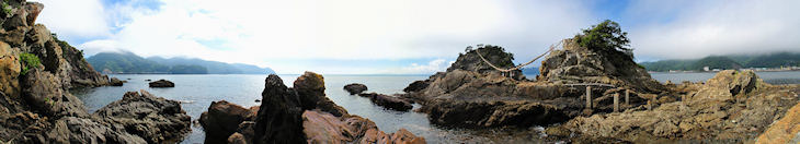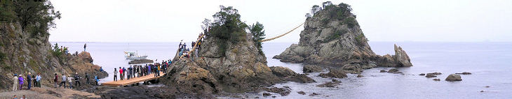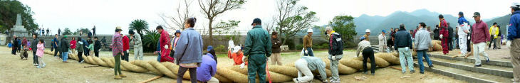 佐伯市上浦の豊後二見ヶ浦のしめ縄は長さ65m、最大直径75cm、重さ2トンと、ギネスブックにも登録された日本一の