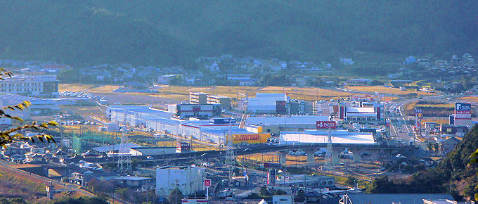 2006年11月9日 水田だった郊外の脇津留地区がこの春から土地が造成されあっという間に新しい町が出来ました 店はどこの町にもあるチェーン店ばかり 佐伯らしさもありません こうして歴史と文化のある 町を作ってきた中心の商店街が破壊されていくのです 前からの計画だったとはいえ このホームページ管理人の自分も昨年まで中心商店街で商売をしてきただけに 複雑な思いがします