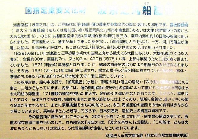 もので「波奈之丸」の額は肥後藩主10代斉護の書を彫刻したものです