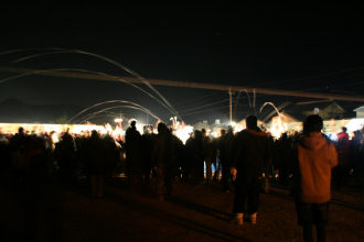 | 点火すると同時に一気に火柱が昇ります | パンパンと竹の割れる大きな音がして迫力満点 | |