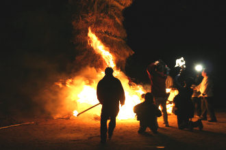 出発の時、神武天皇の航海の安全を祈り近辺の人々が焚火し見送ったのが始まりと