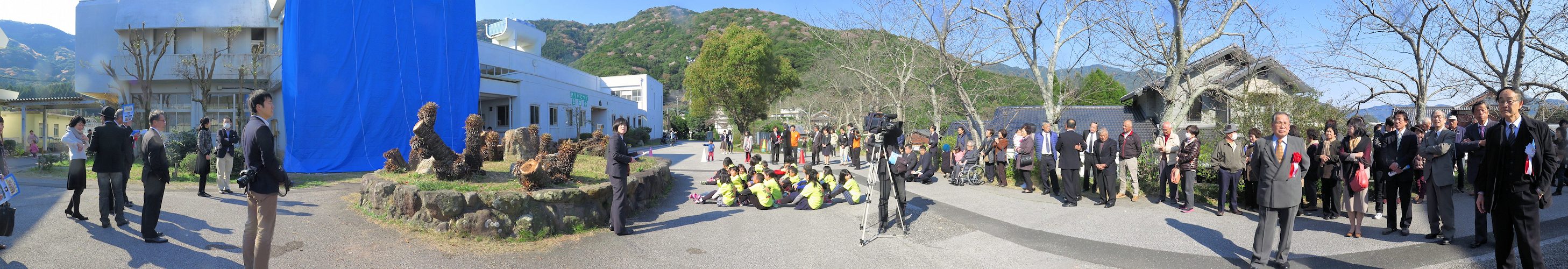 2016年3月27日 壁画の前でお披露目を待つ