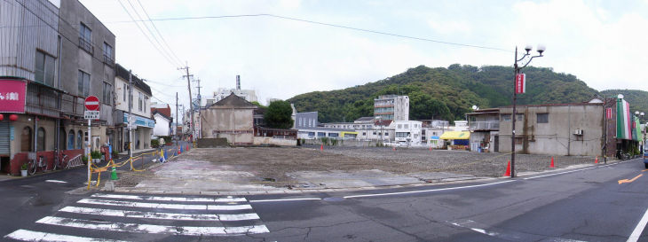 あっというまに片付いた焼け跡 中心市街地の大手前再開発にはずみがつくのだろうか? 下の写真は2005年の夏撮影していました 解体中の寿屋が写っています。