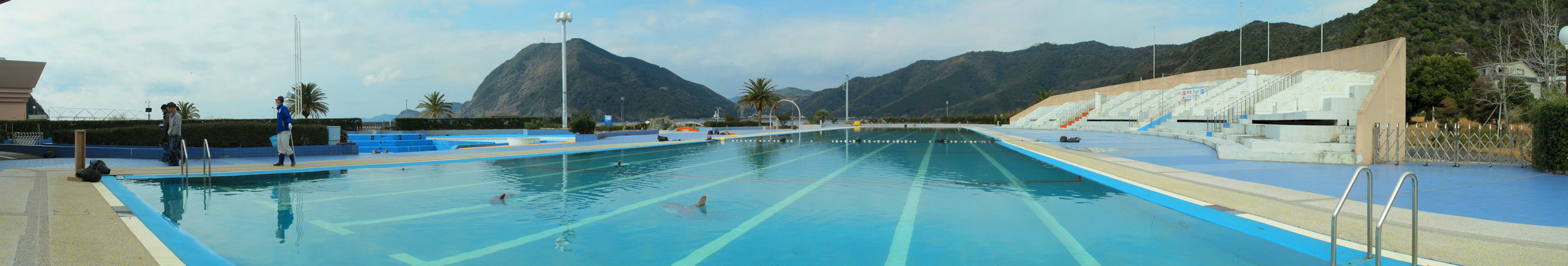 2013年2月17日 正面に背平山を望む大プール 今はマンボウが泳いでいます