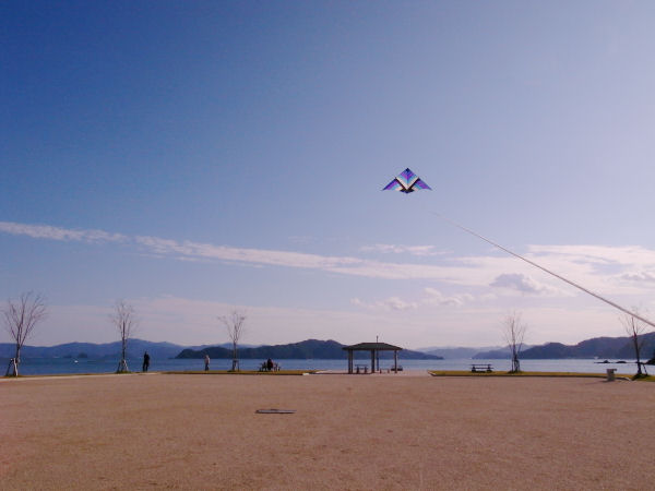 天気は最高 風が弱くやっと凧だけ揚がるくらいおだやかな日