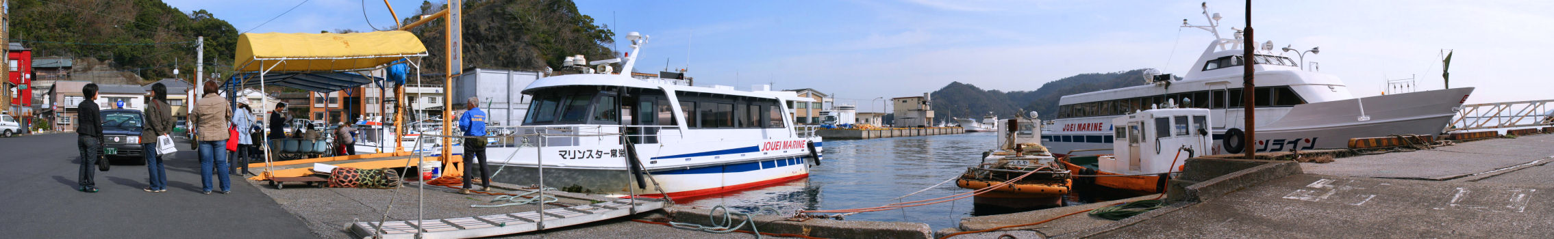 2008年3月22日 大入島の山桜をチャーター船でこれから島の周りを一周して眺めます。