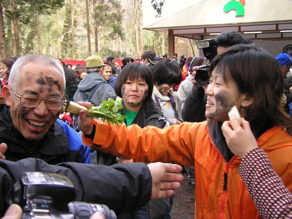 現在では参加者全員で大根の切り口に墨をつけて誰彼となく「祝わせておくれ」といいながら顔中