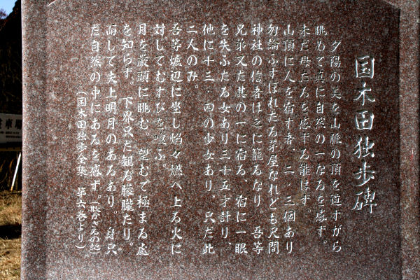 駐車場に建つ国木田独歩碑