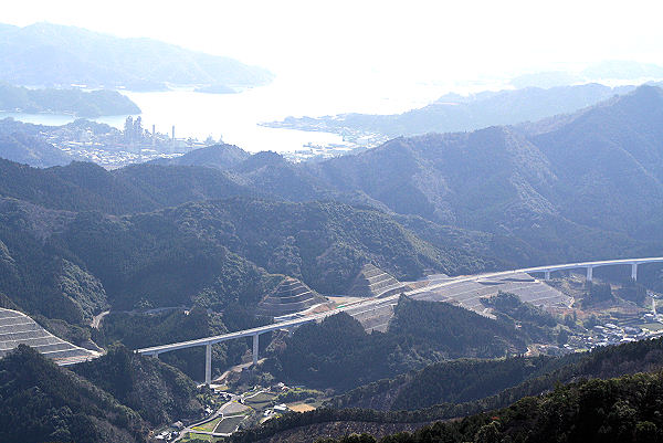 展望台から高速自動車道と海崎を望む