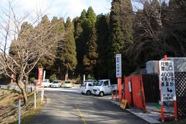 登山には国道10号線尺間が便利です、初詣以外の日には車で2箇所の駐車場まで行き登山できます。
