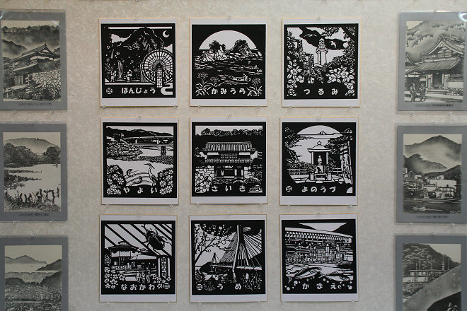 | 四教堂塾 塾長の佐藤巧氏が作成した佐伯市の切り絵 | ||