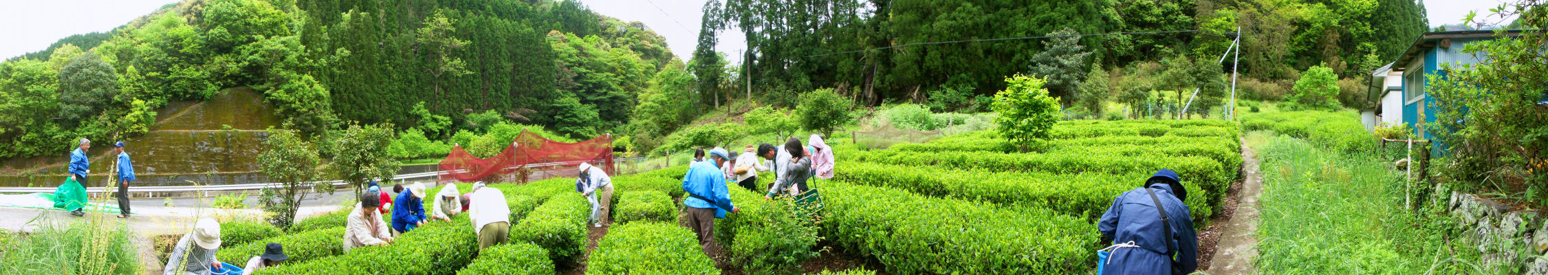 佐伯郷バスの代表幹事で案内人の那木氏所有の茶園で茶摘み体験しました