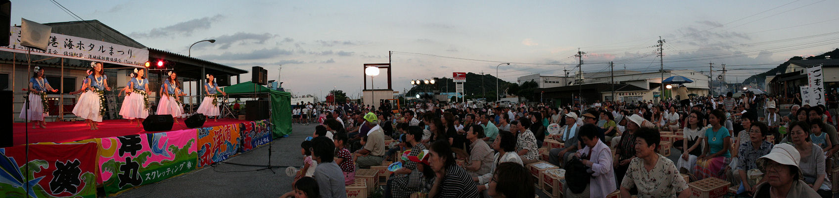 さいき葛港海ホタルまつり 舞台ではフラダンス
