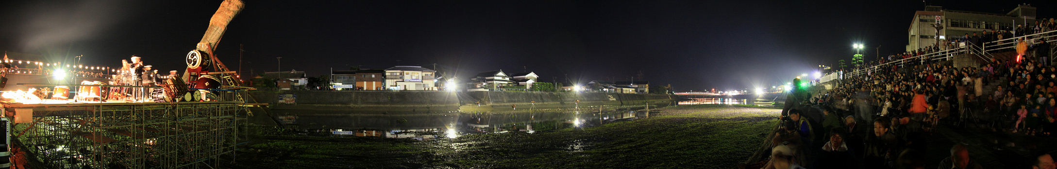 2008年11月14日 若宮八幡神社と豊後高田市役所とこの河川敷 素晴らしいロケーションです 秋季大祭は1084年に始まった祭りで900年以上の歴史ある伝統の祭りです。 旧暦10月14日から3日間行われます。