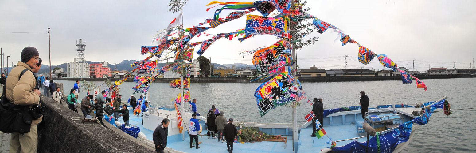 2009年1月11日午前9時前 桂川河口の磯町宝来船係留場から宝来船を撮影