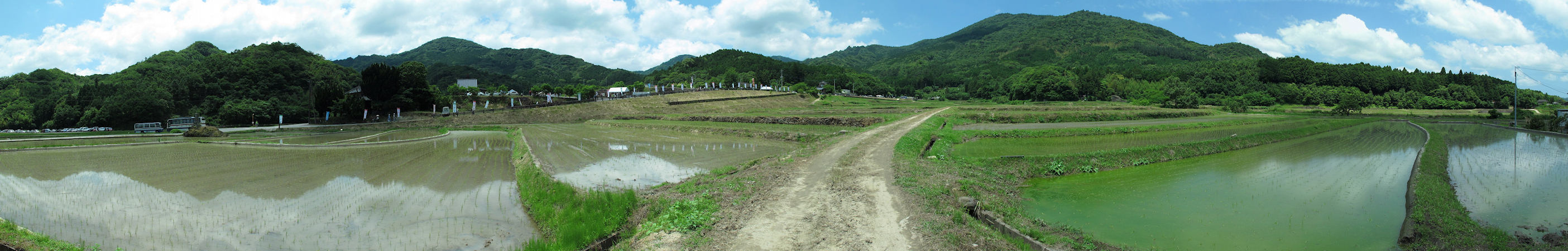 2012年6月10日撮影 旗がたくさん立っているところでこれから御田植祭が開催されます